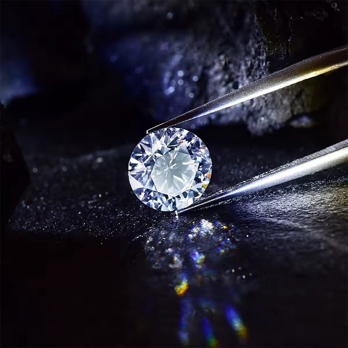 Fast so hart (9,25 vs. 10 Mohs), farblos (D-Color), makellos (VVS1) – und im direkten Vergleich zeigt er sogar etwas mehr Feuer und Brillanz.